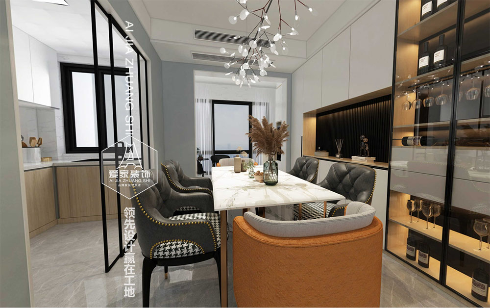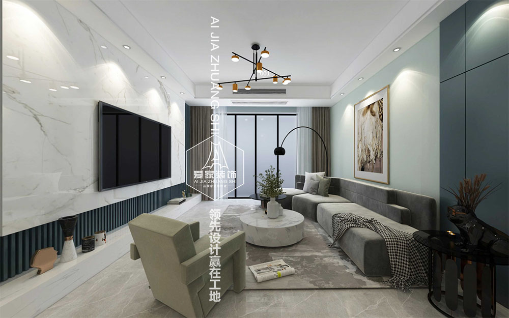 設(shè)計(jì)說(shuō)明:本案以冷色調(diào)為基礎(chǔ),輔以部分軟裝亮色點(diǎn)綴,使得整體清冷感的同時(shí)不會(huì)過(guò)于沉悶,金屬的加入則增添了一絲精致感。