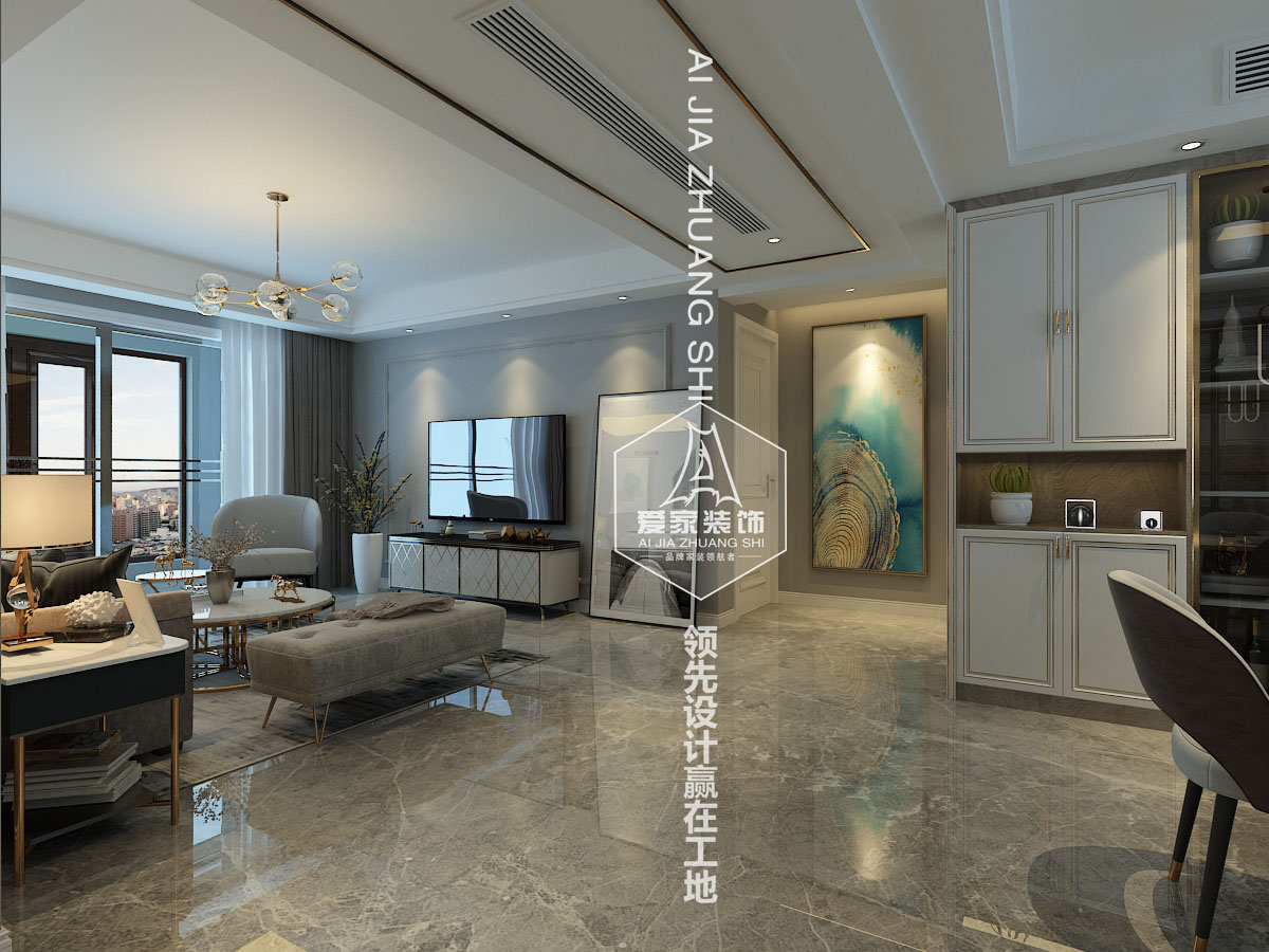 設(shè)計(jì)說(shuō)明:本案采用了白、藍(lán)、金等色調(diào),在整個(gè)空間里呈現(xiàn)的是淡藍(lán)色和白色顏色組合非常流行。加了一點(diǎn)金屬材質(zhì),使整個(gè)空調(diào)更家生動(dòng),有活力。